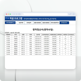 ¿¬Â÷°ü¸®´ëÀå(¿¬Â÷°è»ê, ¿¬Â÷¼ö´ç Á¤»ê¼­)_ȸ°è¿¬µµ ¿¬Â÷ °è»ê°ú Á¤»êÀÌ ÀÚµ¿È­µÅ ½Ç¼ö°¡ ÁÙ°í °ü¸®°¡ ÈξÀ ¼ö¿ùÇØÁ³½À´Ï´Ù.
