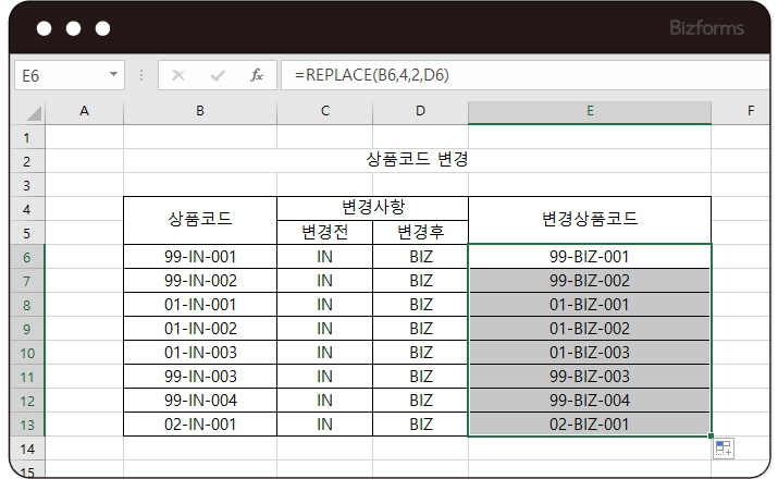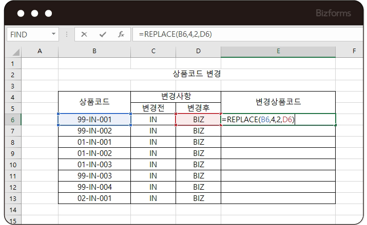 : =REPLACE(old_text, start_number, num_chars,new_text)